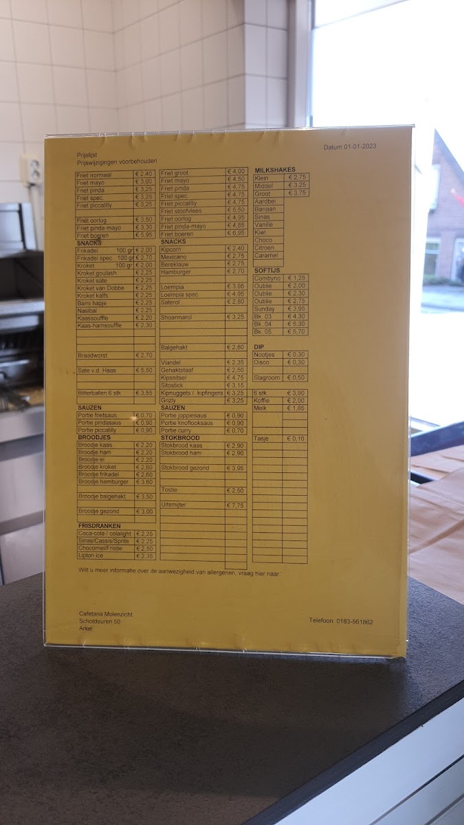 Welcome to Cafeteria Molenzicht, a delightful dining gem nestled in the heart of Arkel at Schotdeuren 50. This local cafeteria is not just a place to grab a quick bite; it's a cherished destination where quality and friendly service meet to create an inviting atmosphere perfect for food lovers of all ages.